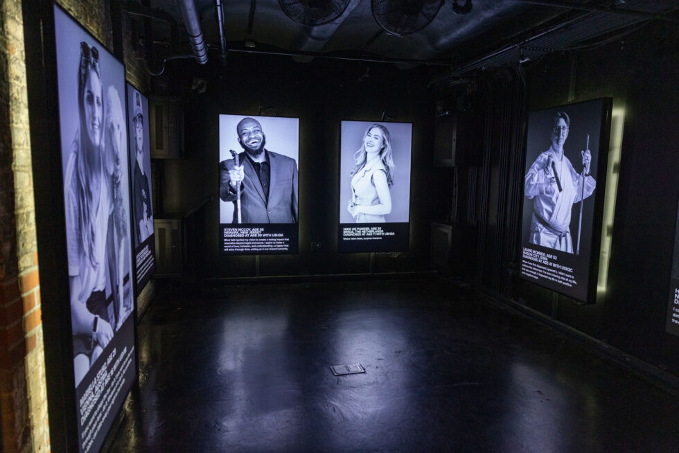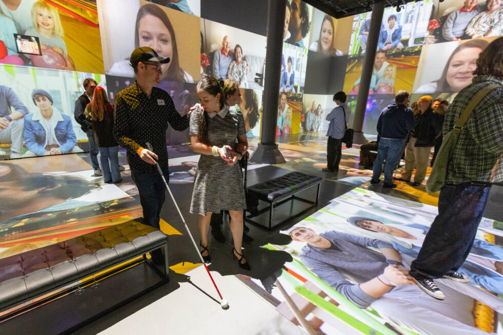 Utilizing ARTECHOUSE’s state-of-the-art technology, attendees were fully immersed in a visual spectacle, an educational experience, and a journey into the reality of living with Usher syndrome, the leading genetic cause of combined deafness and blindness. The immersive gallery was flooded with floor-to-ceiling portraits that moved energetically across the room spotlighting the faces of the Usher syndrome community, while surround sound speakers projected the raw and emotional stories that we have collected over the years to educate the public about this rare disease.