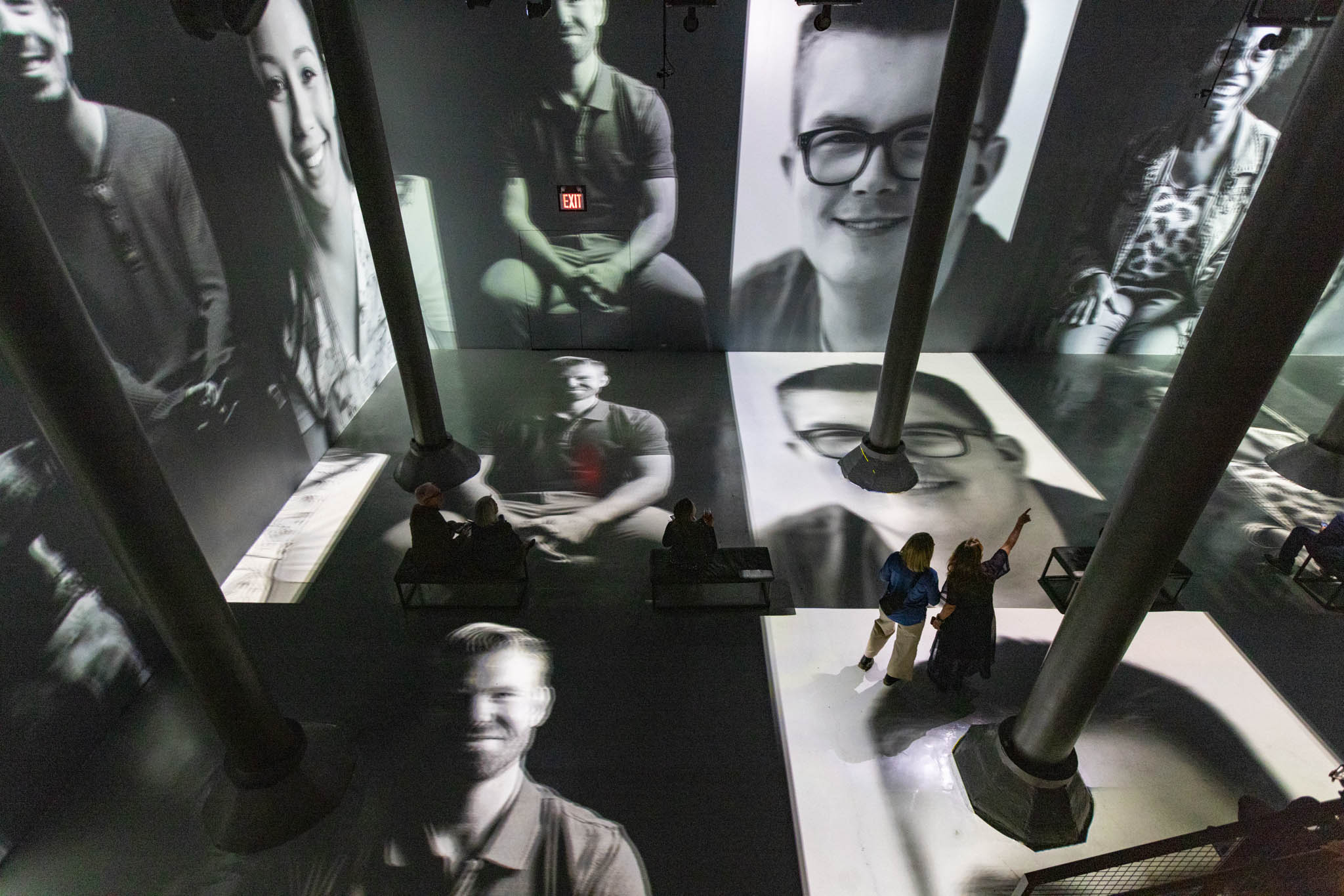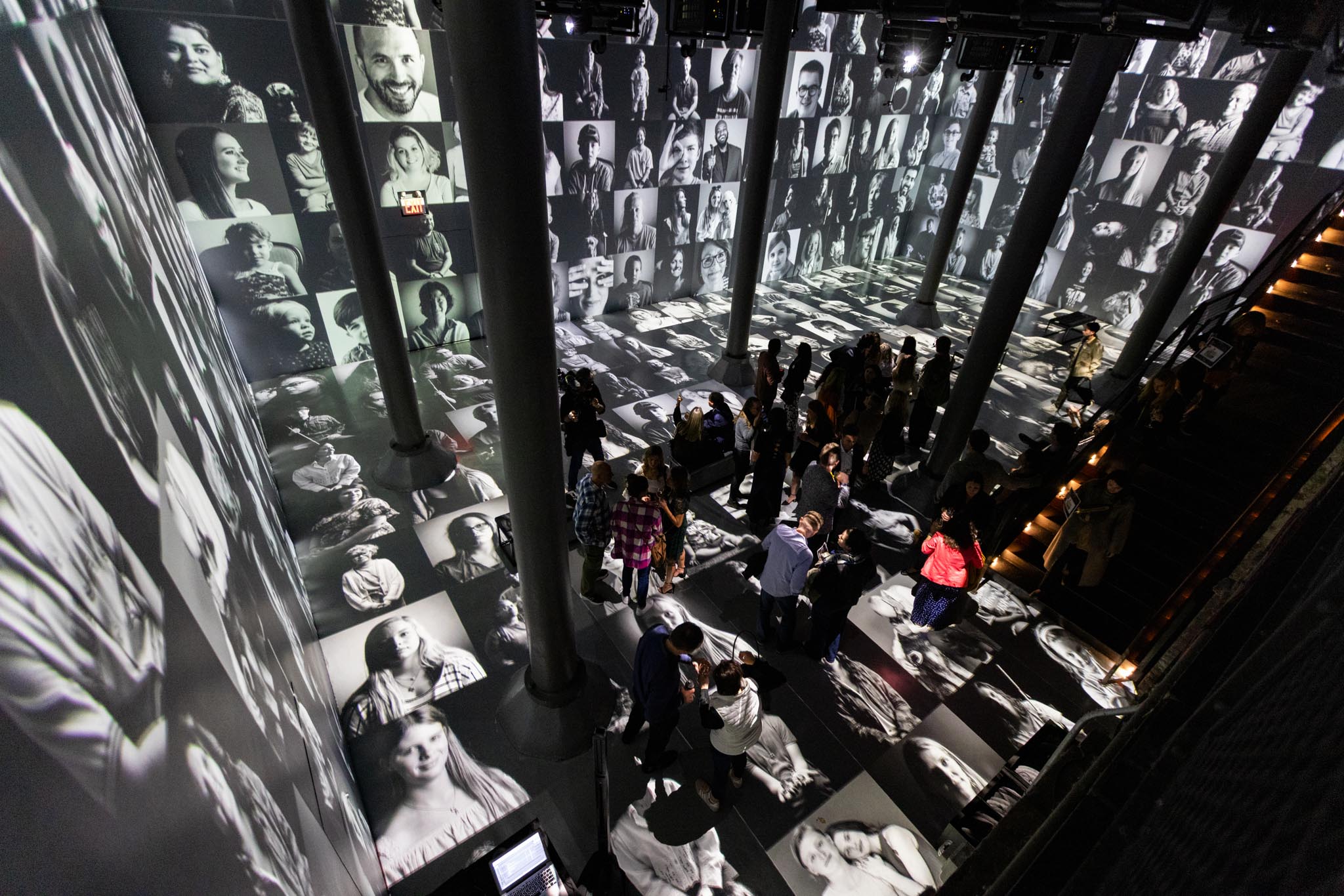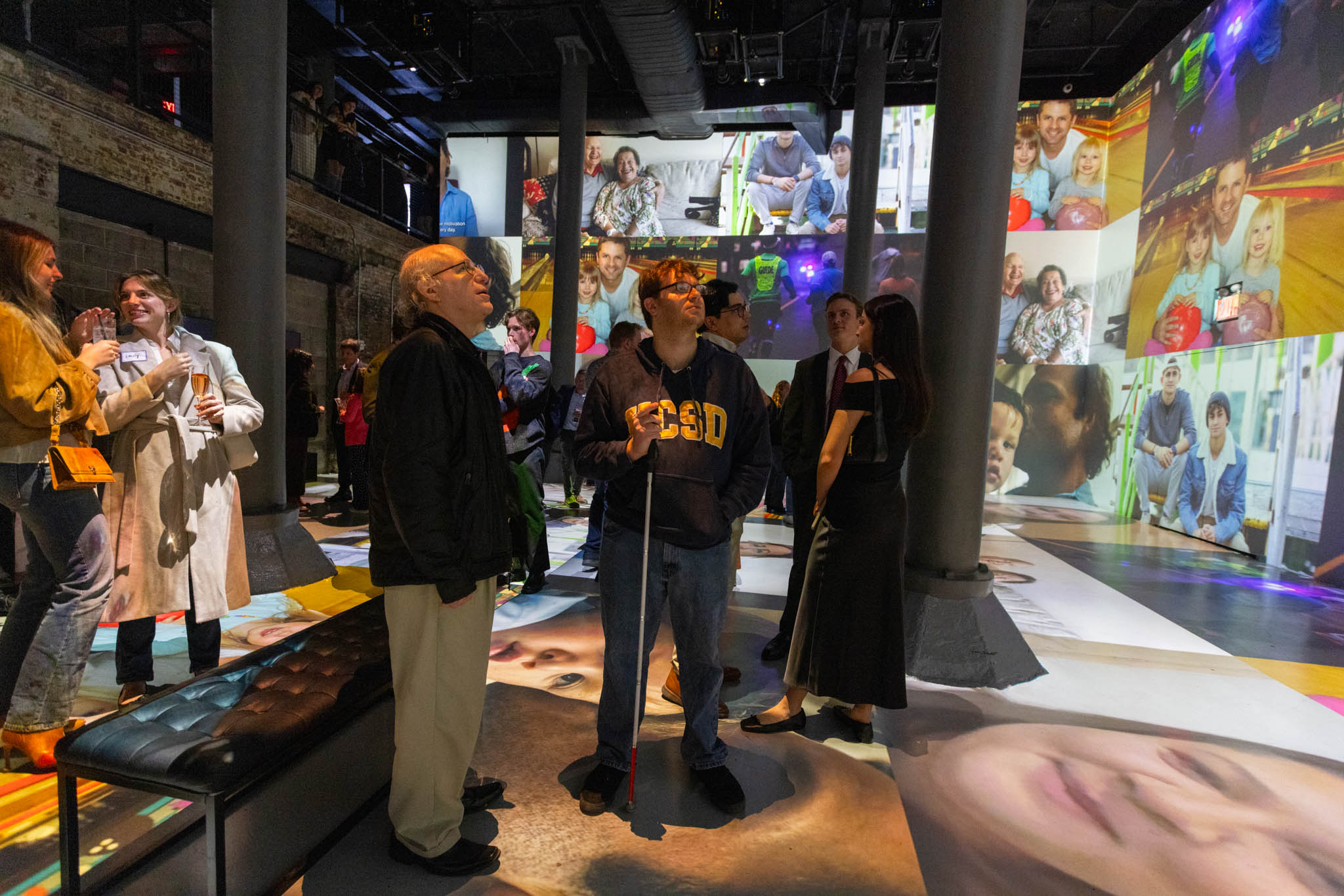 Utilizing ARTECHOUSE’s state-of-the-art technology, attendees were fully immersed in a visual spectacle, an educational experience, and a journey into the reality of living with Usher syndrome, the leading genetic cause of combined deafness and blindness. The immersive gallery was flooded with floor-to-ceiling portraits that moved energetically across the room spotlighting the faces of the Usher syndrome community, while surround sound speakers projected the raw and emotional stories that we have collected over the years to educate the public about this rare disease.